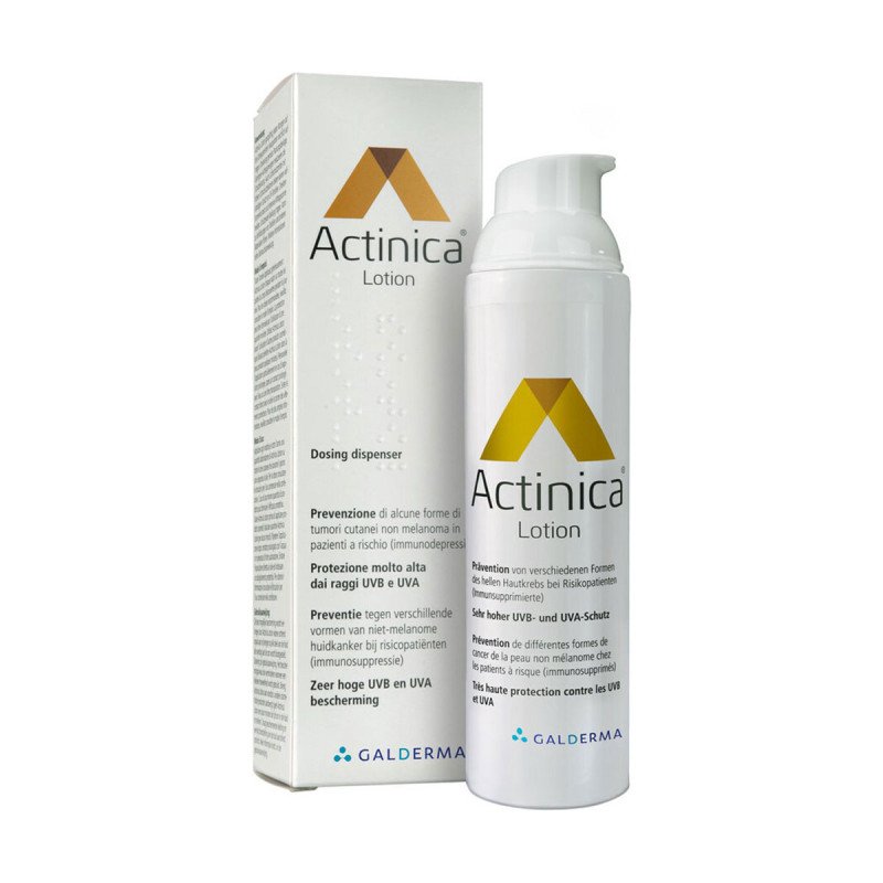 Actinica Lotion SPF 50+ est un dispositif médical conçu pour la prévention des différentes formes de cancer de la peau non mélanome chez les patients à risque, notamment ceux immunosupprimés. Offrant une très haute protection contre les UV, cette lotion a démontré son efficacité dans la prévention des kératoses actiniques et des carcinomes épidermoïdes lors d’une étude de deux ans menée sur des patients ayant subi une greffe d’organe.