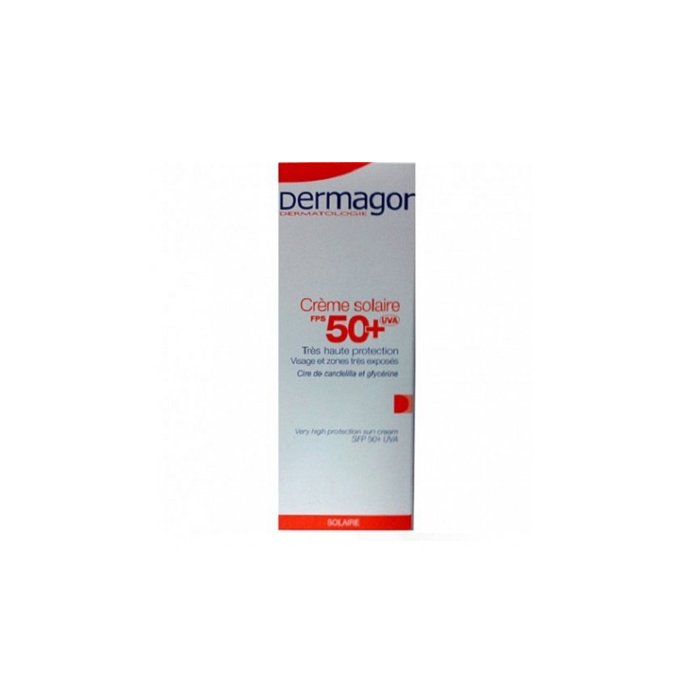 Dermagor Crème photoprotectrice SPF 50+ Enrichie en émollients et en cire de candelia, protège la couche supérieure de la peau et l’empêche de se dessécher sous l’action des rayons UV.