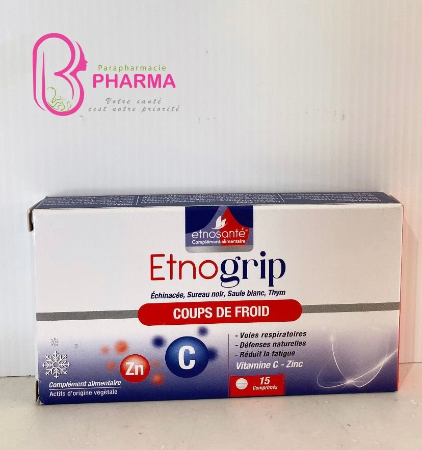 Etnosgrip est un complément alimentaire en 15 comprimés, souvent utilisé pour soutenir l’organisme face aux états grippaux ou aux infections saisonnières.