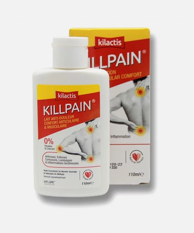 Kilactis Killpain est un gel anti-douleur efficace pour les douleurs articulaires et musculaires, offrant un confort rapide et un effet anti-inflammatoire durable.