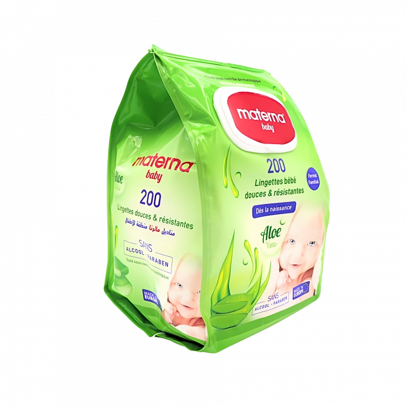 Les lingettes Materna au format familial (200 pièces) sont conçues pour offrir une solution pratique et hygiénique pour le soin quotidien des bébés. Voici leurs principales caractéristiques :