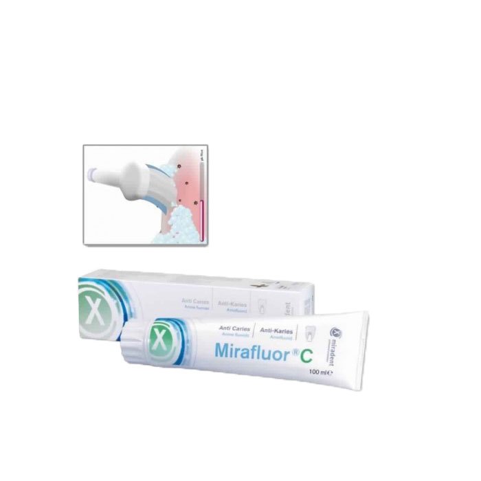 Mirafluor aux fluorures aminés a un effet important de réduction de la plaque dentaire. L’utilisation de la dentifrice conduit à une concentration élevée de fluorure dans la salive, ce qui prévient les caries. Grâce à l’activité en surface, les fluorures aminés se répartissent rapidement dans la cavité orale, couvrent les surfaces d’une couche moléculaire homogène et apportent le fluor là où on en a besoin. La consistance du film empêche un lavage rapide par la salive. Les granulés de silicium veillent également au nettoyage de la gencive.