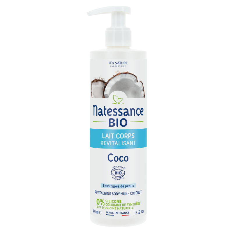 Le Natessance Lait Corps Revitalisant Coco 400ml est un soin hydratant et nourrissant conçu pour revitaliser la peau sèche et fatiguée. Enrichi en huile de coco bio, il apporte une hydratation profonde et protège la peau contre la déshydratation. Ainsi, la peau retrouve confort, douceur et souplesse dès la première application.