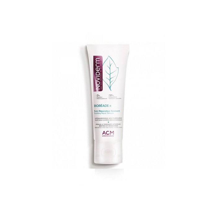 Le soin réparateur apaisant Boréade R des laboratoires Noviderm, est un soin du visage utilisé pour nourrir intensément la peau suite au dessèchement provoqué par des traitements dermatologiques contre l’acné. Avec sa texture onctueuse et non grasse, il fond très rapidement sur la peau afin d’apporter un réconfort immédiat tout en la laissant souple et parfaitement hydratée.