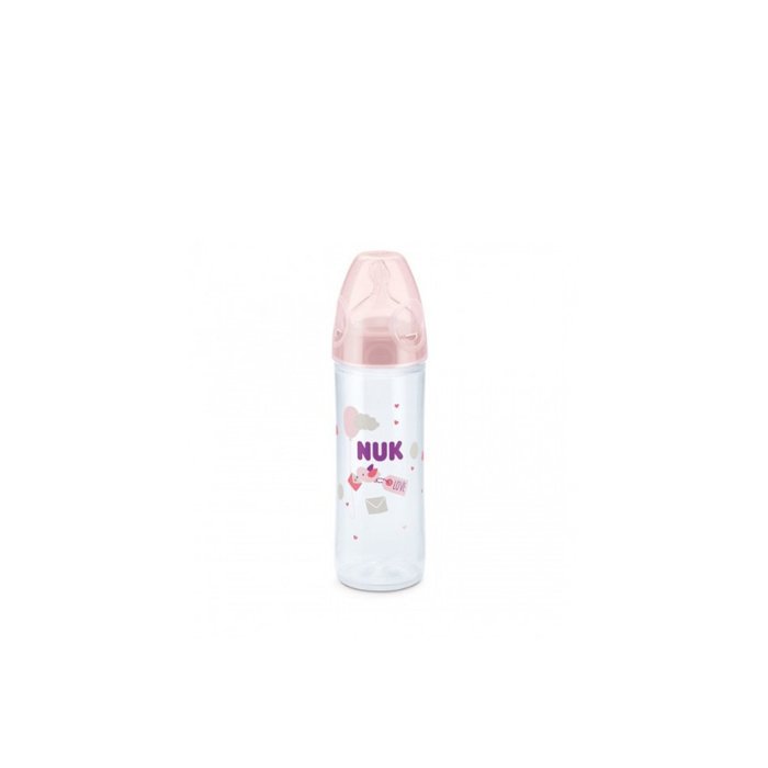 Le biberon NUK Love de 250 ml, conçu pour les bébés de 6 à 18 mois, est idéal pour réduire les risques de coliques et favoriser une bonne digestion.