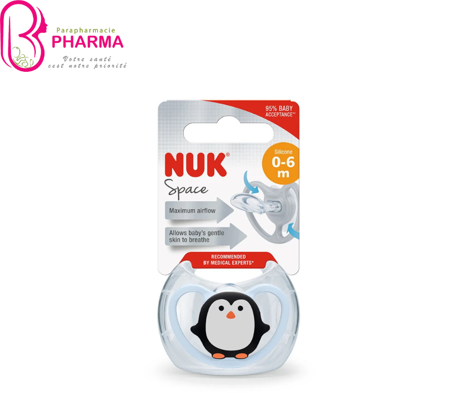 La sucette en silicone NUK Space est conçue pour offrir confort, innovation et protection pour les bébés :
