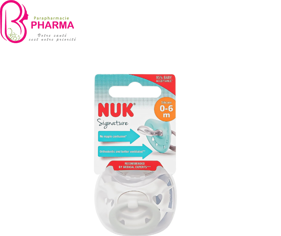 La NUK Sucette Silicone Signature 0-6 Mois est spécialement conçue pour offrir confort et sécurité aux nourrissons dès la naissance :