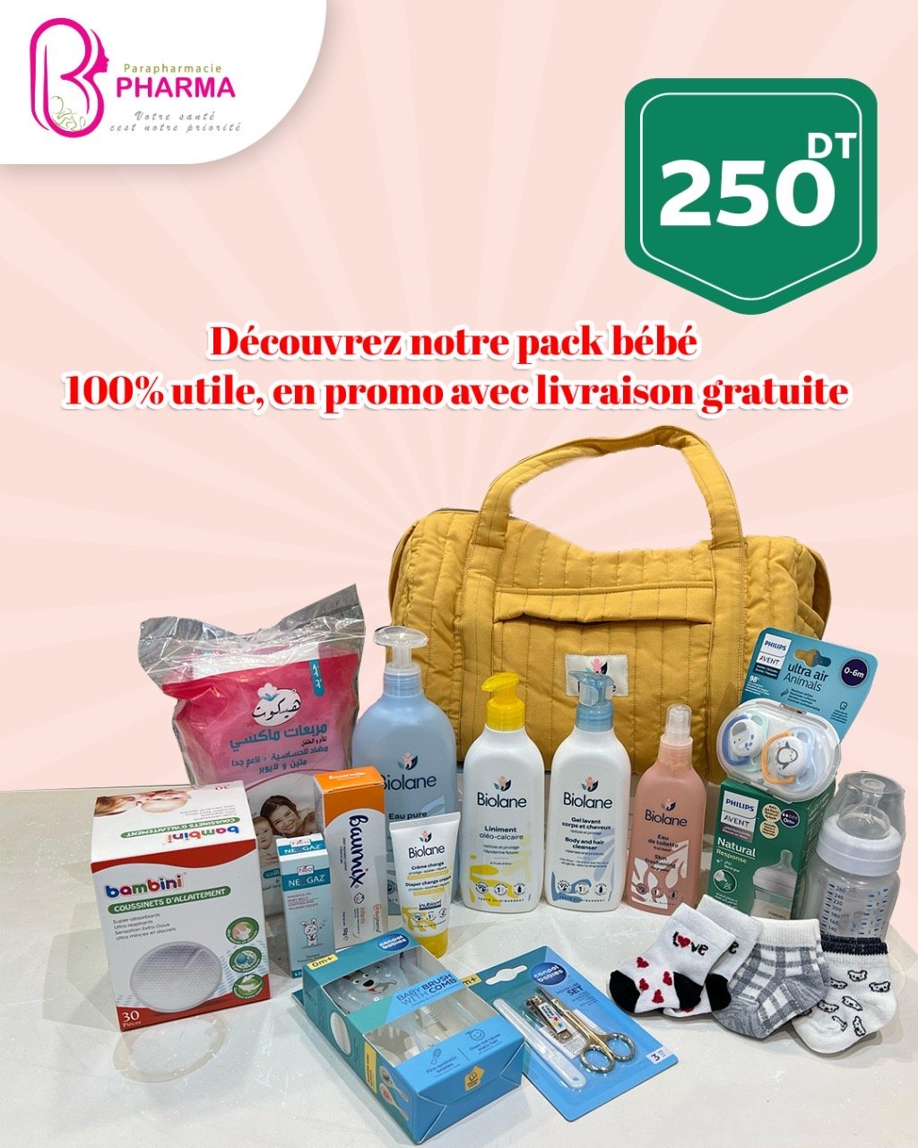 Un pack lumineux et complet pour prendre soin de bébé et de maman, dès la naissance. Idéal comme cadeau de naissance ou pour se préparer à l’arrivée de bébé, le tout dans un magnifique sac jaune matelassé ultra-pratique.
