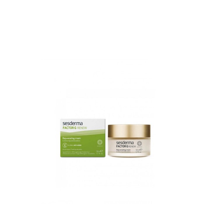 La Crème anti-âge Sesderma Factor G contient des facteurs de croissance et des cellules souches végétales qui stimulent la régénération cellulaire, réduisent les rides et restaurent la turgescence de la peau.