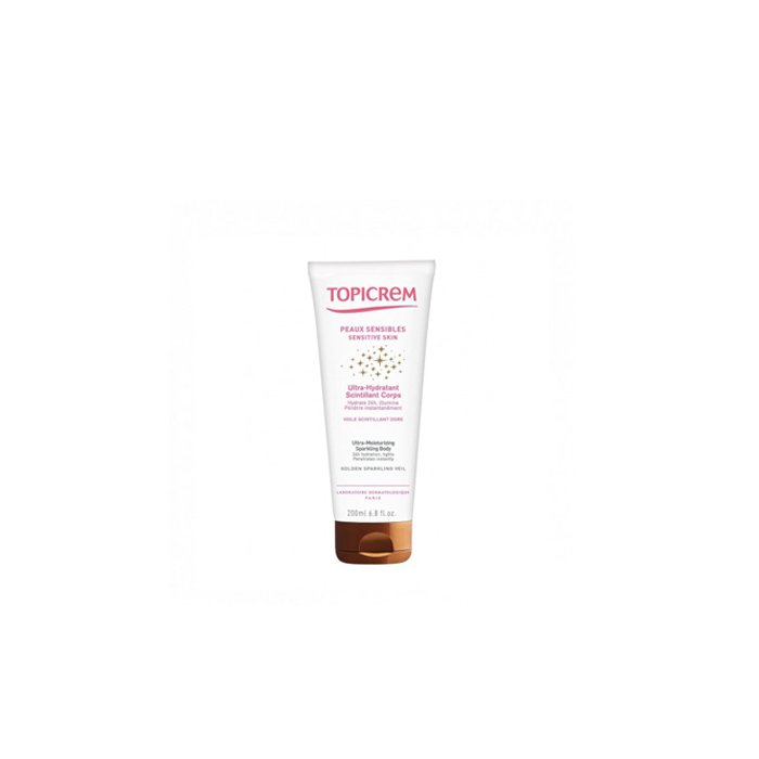 Topicrem Ultra-Hydratant Scintillant Corps 75 ml sous forme d’émulsion onctueuse, pénètre rapidement dans la peau, pour hydrater pendant 24 heures et illuminer.
