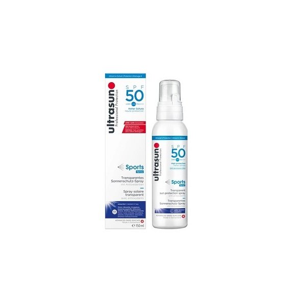 Spray solaire protection UVA et UVB (SPF 50) transparent à absorption rapide, non gras et non collant, avec GSP pour une protection contre les infrarouges. Idéal pour les personnes actives et sportives, rapides et faciles à appliquer.